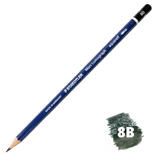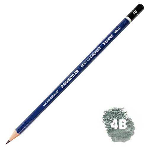 描いた部分を水を含ませた筆などでなぞると、鉛が溶け、水彩のような表現ができる鉛筆です。グラデーション、陰影の濃淡が簡単に表現できます。濡れた紙への描きこみや、乾いてから再度溶かすことも可能です。硬度は8B、6B、4Bの3種類。それぞれの硬度をまとめたセット商品もございます。