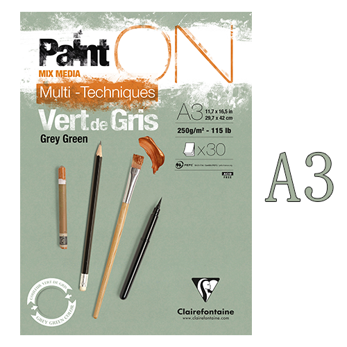 クレールフォンテーヌ ペイントオン【GreyGreen-グレーグリーン-】 30枚綴 A3