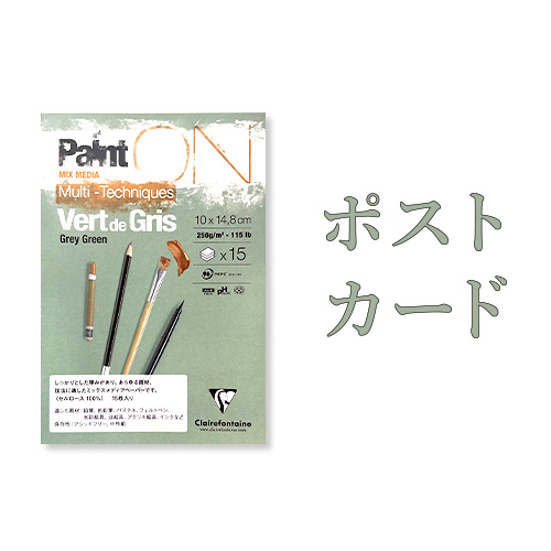 クレールフォンテーヌ ペイントオン【GreyGreen-グレーグリーン-】 15枚入 ポストカードサイズ