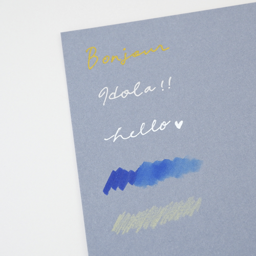 スケッチ、デッサン、ペイント、製図、スクラップブッキングなど、ドライ・ウェット問わず様々な技法に適したペーパーパッドです。丈夫でしっかりとした厚手の中性紙(250g/㎡)で、裏移りしにくく保存性にも優れており、消しゴムをかけても毛羽立ちにくいです。パッド製本のため1枚ずつきれいにはがすことができます。紙色はやさしいデニムブルーの用紙で、顔料をとらえられるよう、表面は少しざらついています。メタリックやホワイトカラーの画材との相性は抜群です。