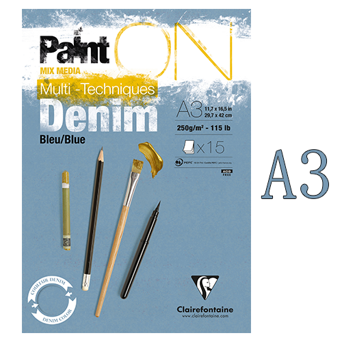 クレールフォンテーヌ ペイントオン【Denim-デニムブルー-】 15枚綴 A3