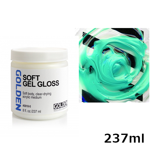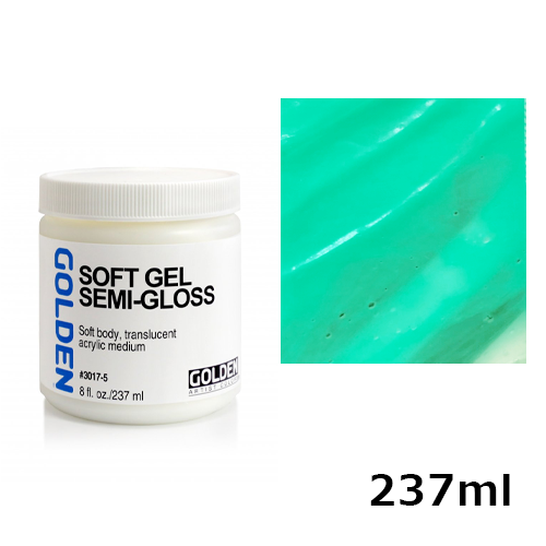 アクリル絵具に、盛り上げ効果やつやなどの質感を加えることができるジェル状のメディウムです。アクリル絵具と同じ100%アクリルポリマーを使用しているため、本質的には無色の絵具です。ジェルは、コラージュやミクストメディア用の接着剤としても優れており、乾燥すると耐薬品性、耐水性、耐紫外線性を備えた優れた柔軟性を発揮します。