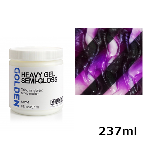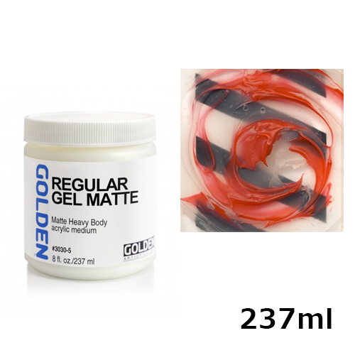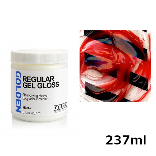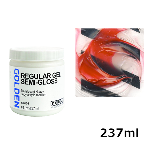 ・レギュラージェルは、ゴールデンアクリリックスヘビーボディとほぼ同じ粘度で、粘度を変えずに絵具を増量したり、透明度を調整したりするのに適しています。インパスト(盛り上げ)技法にも効果的です。