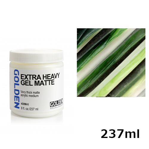 ・ゴールデンアクリリックスヘビーボディよりも粘度が高く、絵具と混ぜることで固さを出すことができます。絵具を盛上げたときの形状保持に優れています。