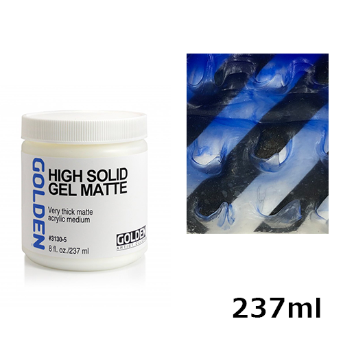 ・GOLDENのジェルの中で最も粘度が高く、絵具と混ぜることで固さを出すことができます。盛上げたときの形状保持や描画用具の痕の保持に優れています。