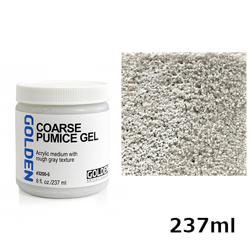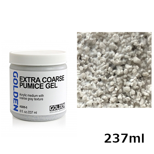 ・乾燥すると硬い塗膜になるメディウムです。絵具と混ぜたり、支持体に塗布すると、より粗い質感を生み出し、コンクリートのような仕上がりになります。