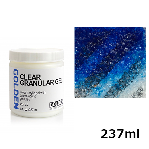 ・粒状のアクリル固形物で作られたメディウムです。優れた透明性と耐久性を持ち、乾燥すると半透明になる粗い質感を持っています。色の変化を最小限に抑えながら絵具を増量し、質感を加えることができます。