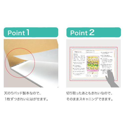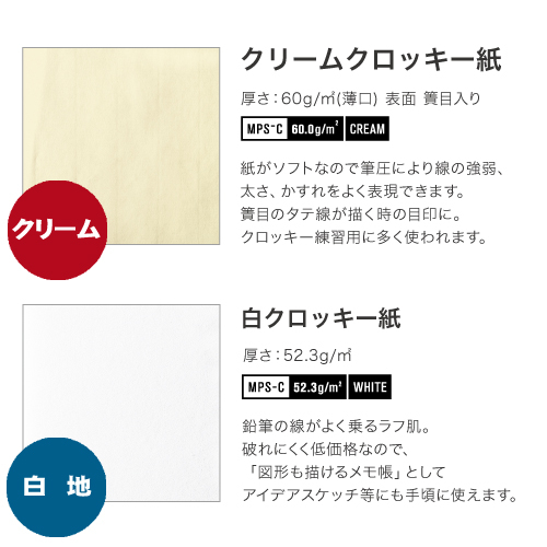 長年多くの方に親しまれているマルマンの「クロッキーブック」に描いたアイデアやデザインをキレイにサッと切り取れる、 天糊パッドタイプの「クロッキーパッド」が登場しました。とじ部分を糊で固定した天のりパッド製本なので、用紙を1枚ずつ簡単に切り取れます。切り取り目がきれいなので、コピーやスキャニングによるデータ保管にも便利です。