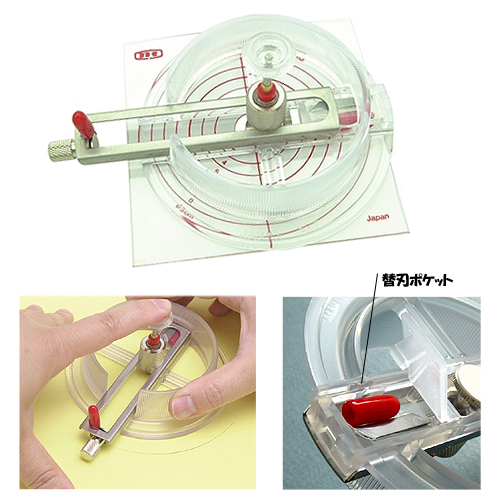 ●中心にピン跡を残さずにカットできる円切り(カット範囲φ1.8~17cm)カッターです。